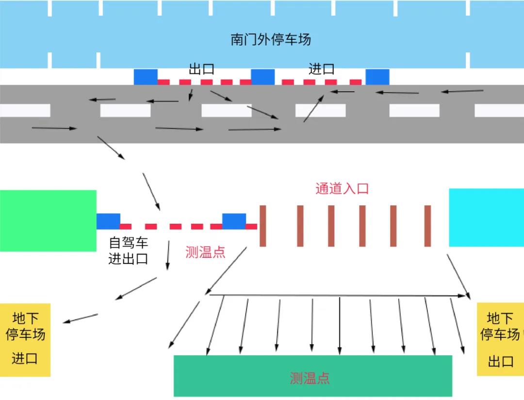 5、从南门进入校园的考生,临时车辆可进入南门外停车场,考生自驾车可从考生自驾车辆通道进入校园,按照保安指引将车辆停放在指定停车区域。