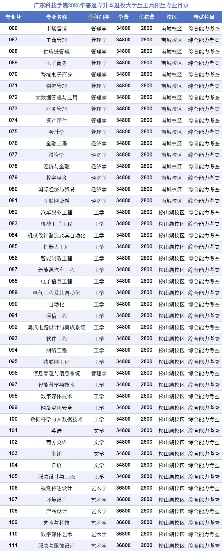 备注:美术与设计类(艺术学门类)不招色盲色弱,以广东省2026年普通专升本专业目录为准。